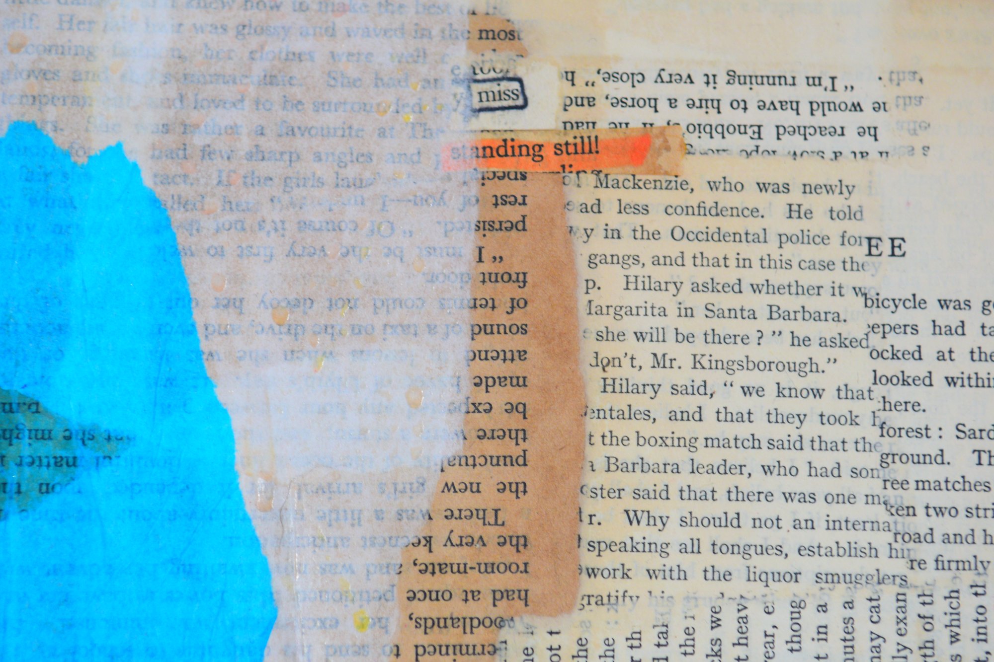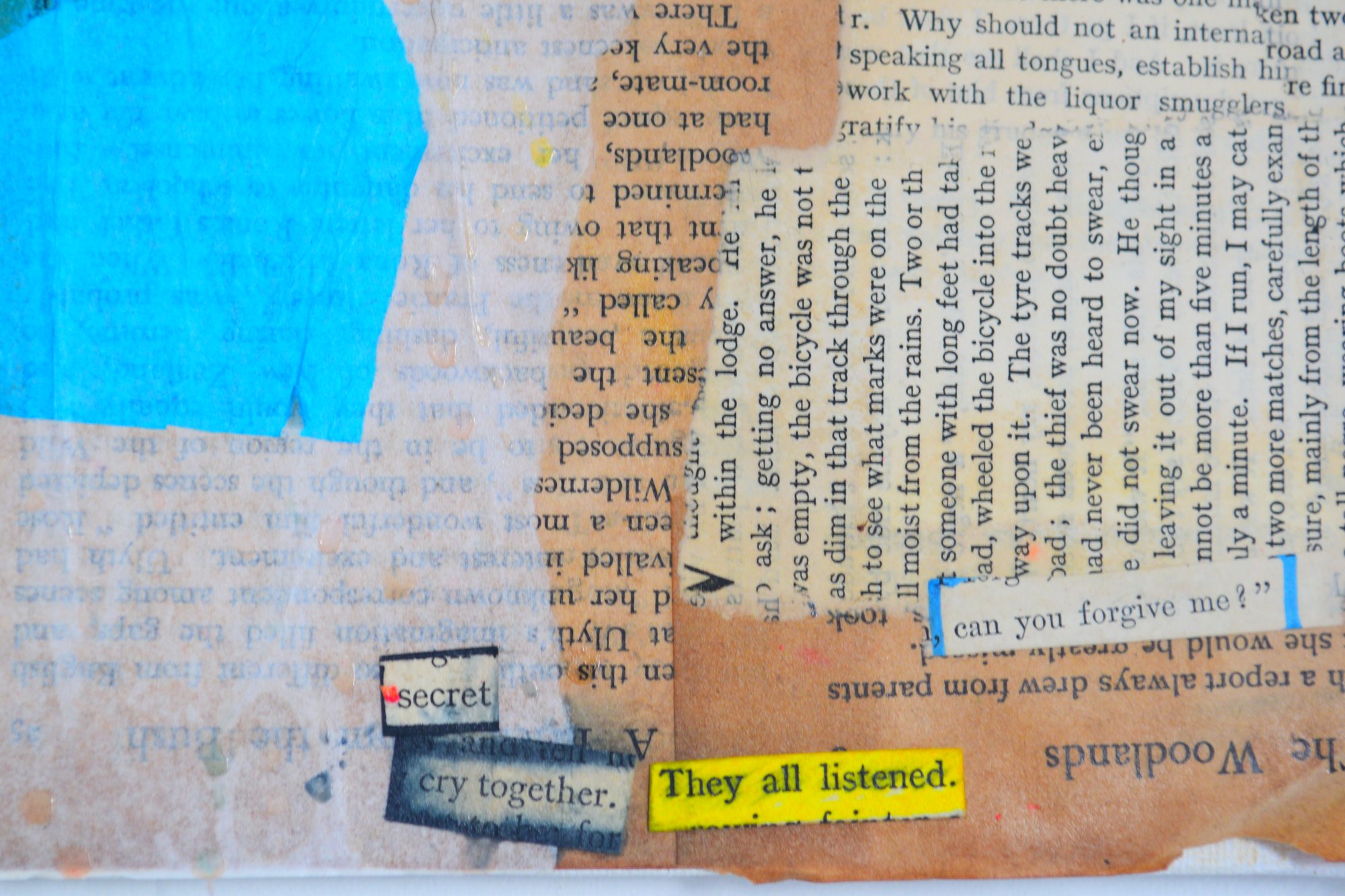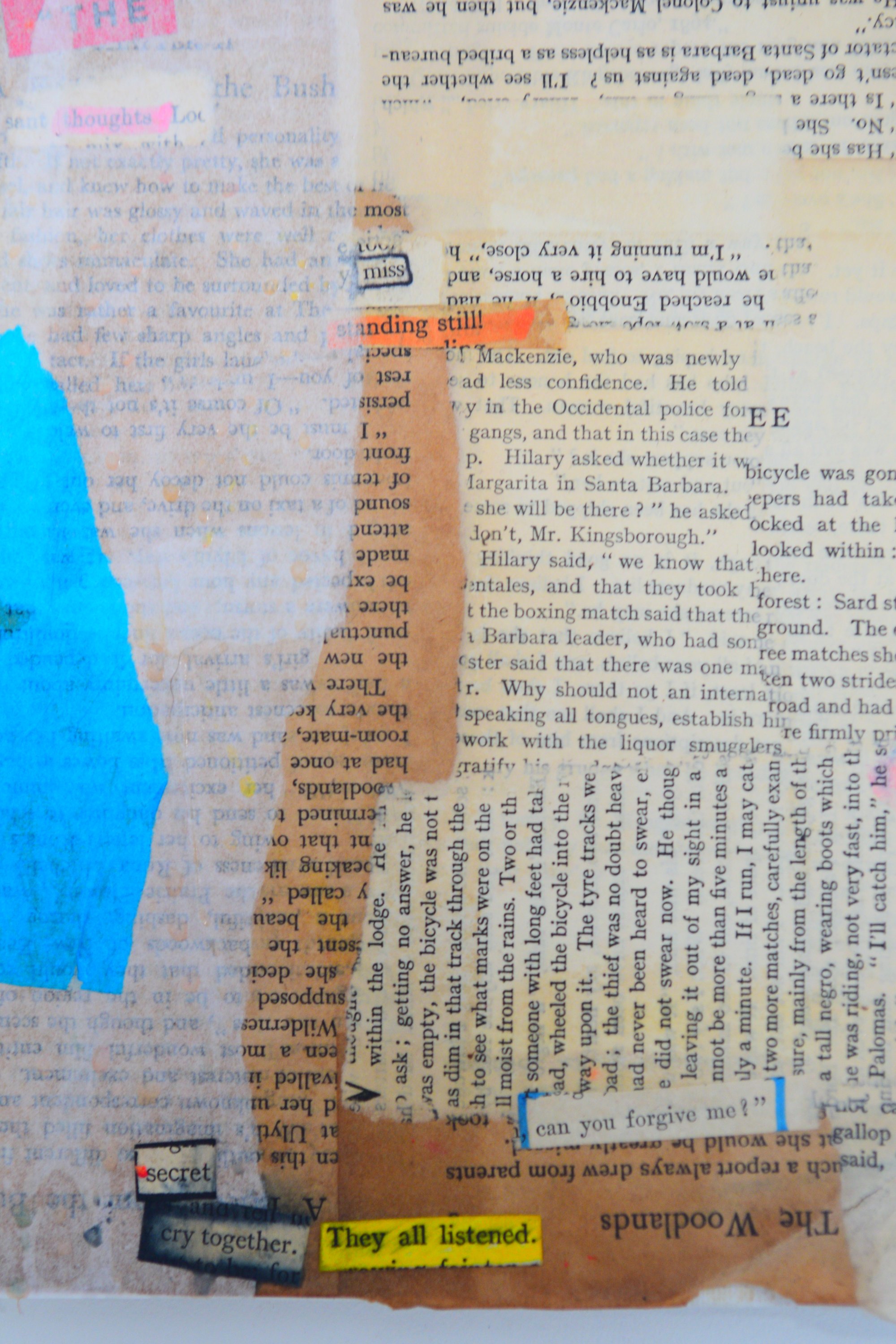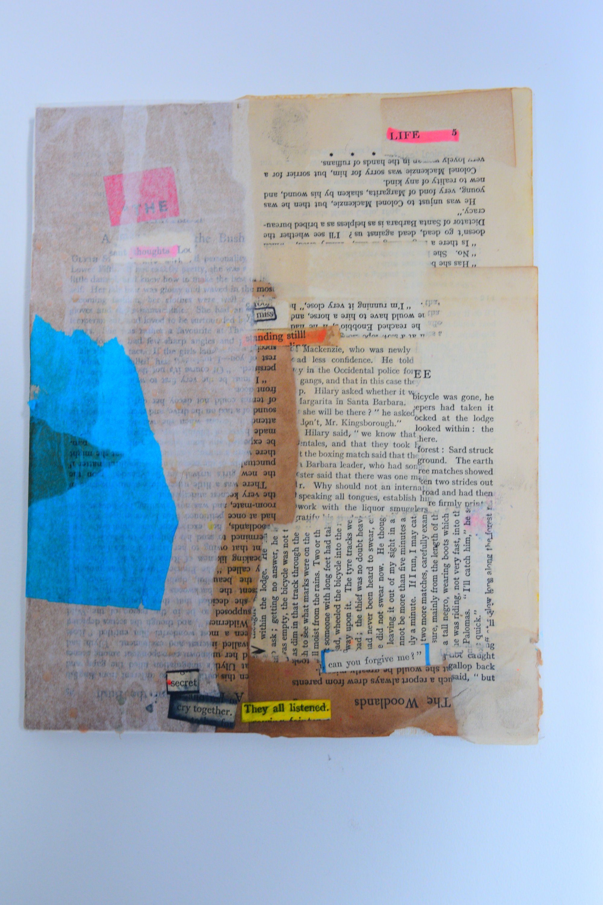 Tissue paper and very old book pages with selected words that I have sourced over 15 years cutting out.